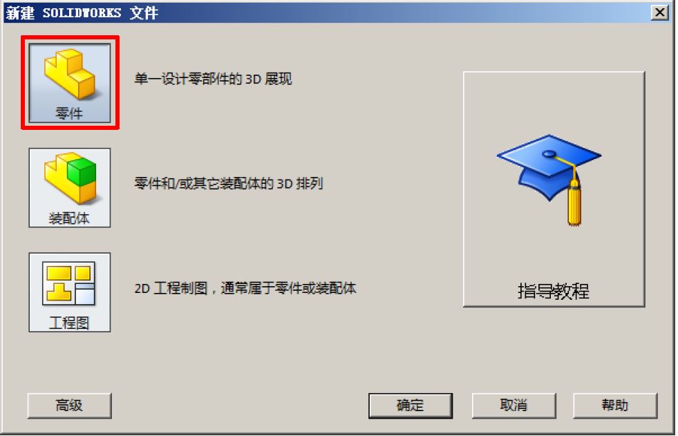 按图指示新建零件图,更详细的帮助请点击”指导教程”