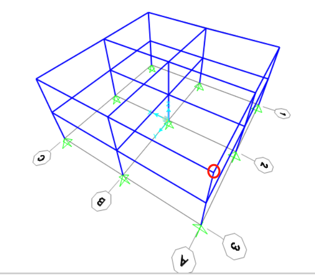 最后以下图的框架结构为例,用户选择红圈内的点并启动插件,试图对该点坐标进行缩放操作,最后的效果如图所示: