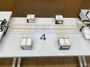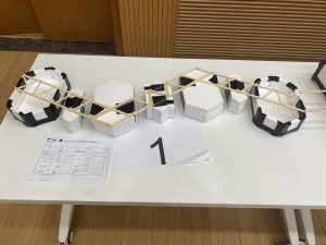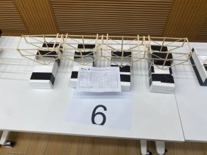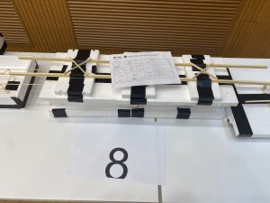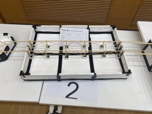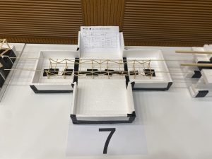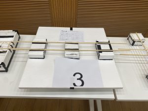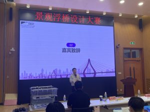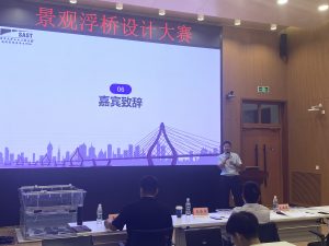 在王法承老师为大赛致开场词后,各组选手开始自己的答辩、模型展示以及加载环节。答辩中,老师们对同学们的参赛方案进行提问,选手认真回答,现场气氛十分热烈;在激动人心的加载环节中,现场观众一同屏息静待加载结果,为选手浮桥模型的精彩表现欢呼喝彩。